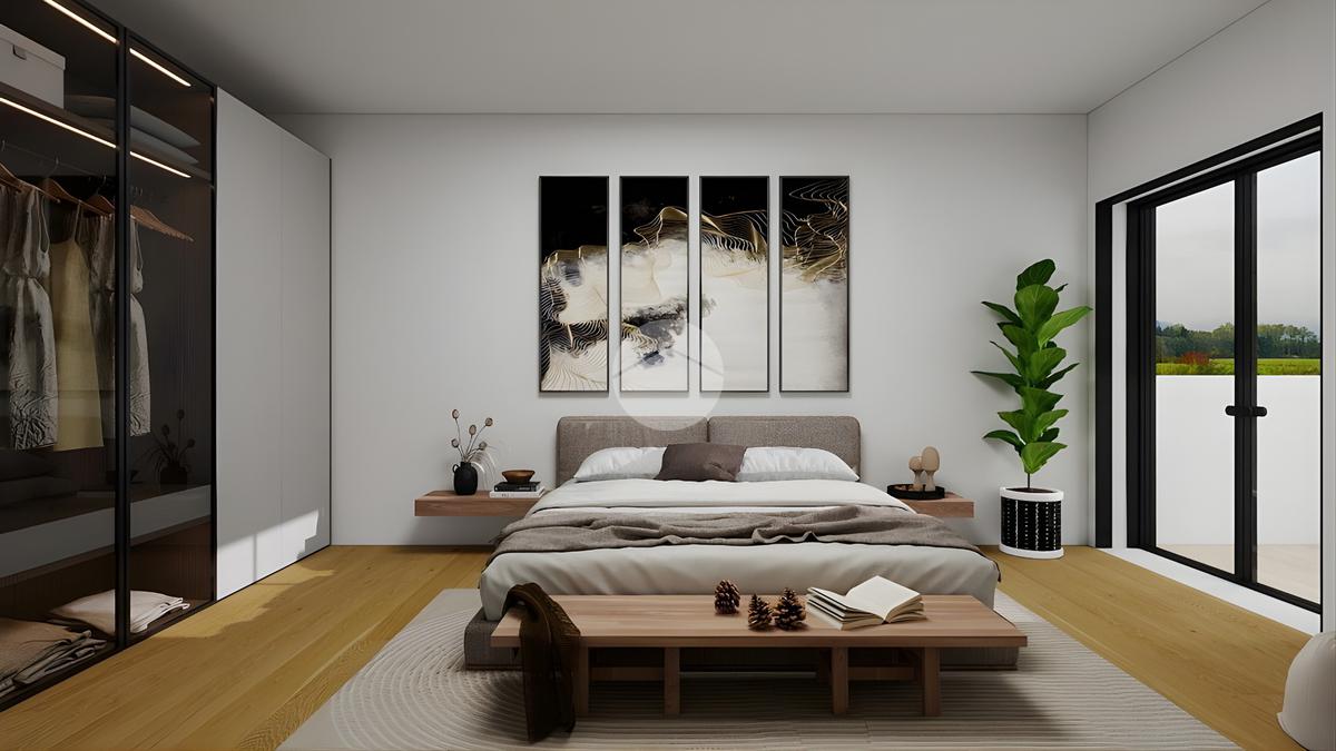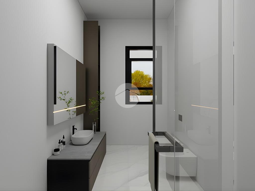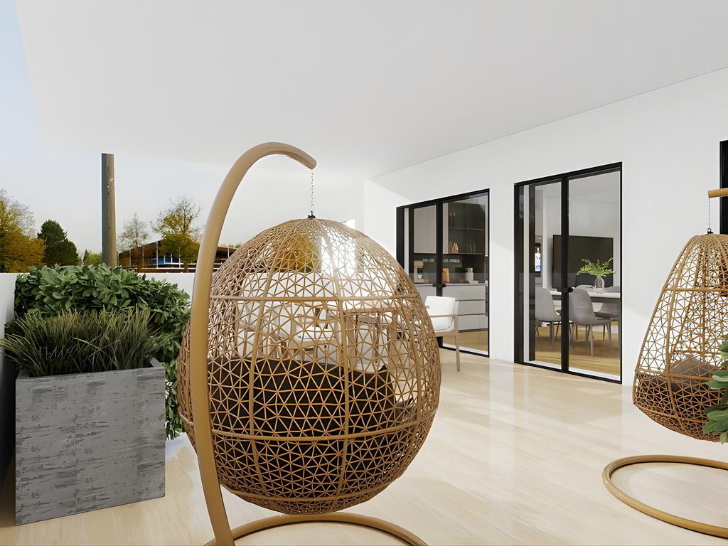 Il cuore della casa è la zona living open space con cucina e soggiorno, valorizzata da un’ampia vetrata che si apre direttamente sull’esterno, garantendo straordinaria luminosità naturale e una piacevole continuità tra interno ed esterno.