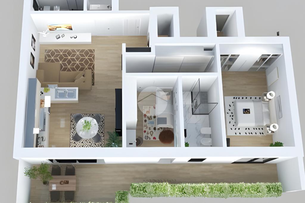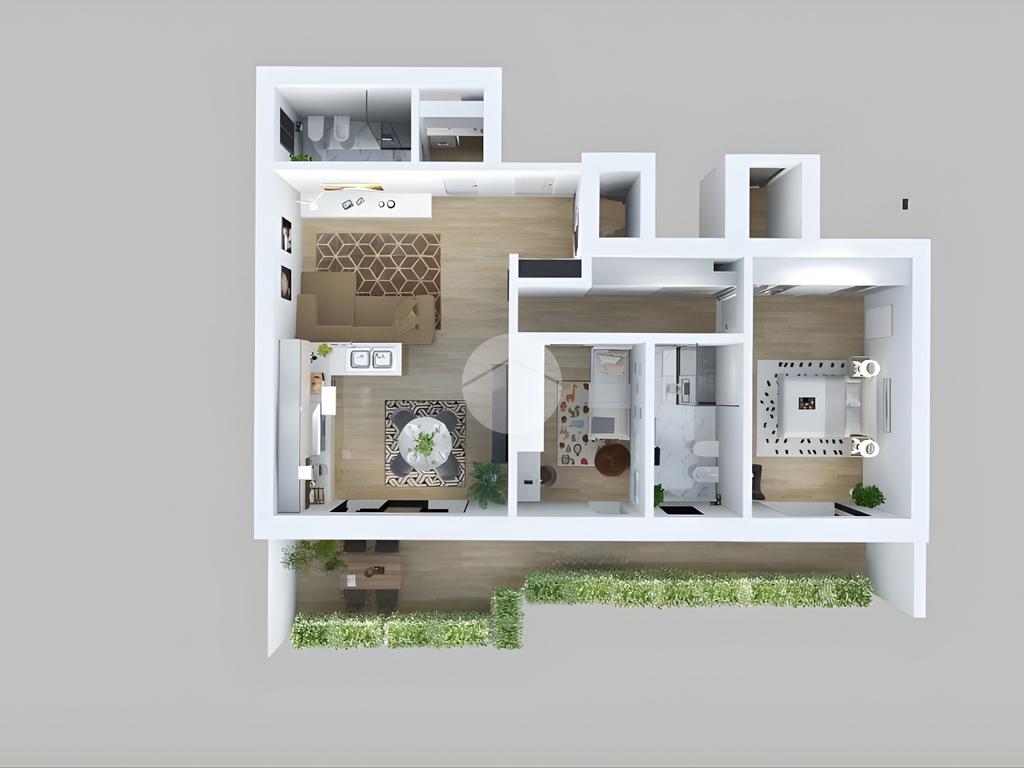 Il cuore della casa è la zona living open space con cucina e salotto, valorizzata da un’ampia vetrata che si affaccia direttamente sul terrazzo esterno, capace di garantire straordinaria luminosità naturale e una piacevole continuità tra interno ed esterno.